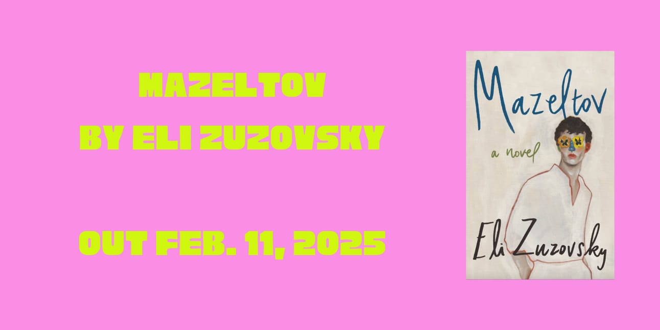 Eli Zuzovsky is an Israeli-Italian Harvard alum, Rhodes scholar, playwright, filmmaker, and now: novelist. Mazeltov tells the story of Adam Weizmann’s bar mitzvah party at a banquet hall in Israel, with the country on the brink of war and Adam on the brink of manhood. His personal angst—a mixture of queer lust and shame—collides with his family’s mishegas and the country’s combustibility.